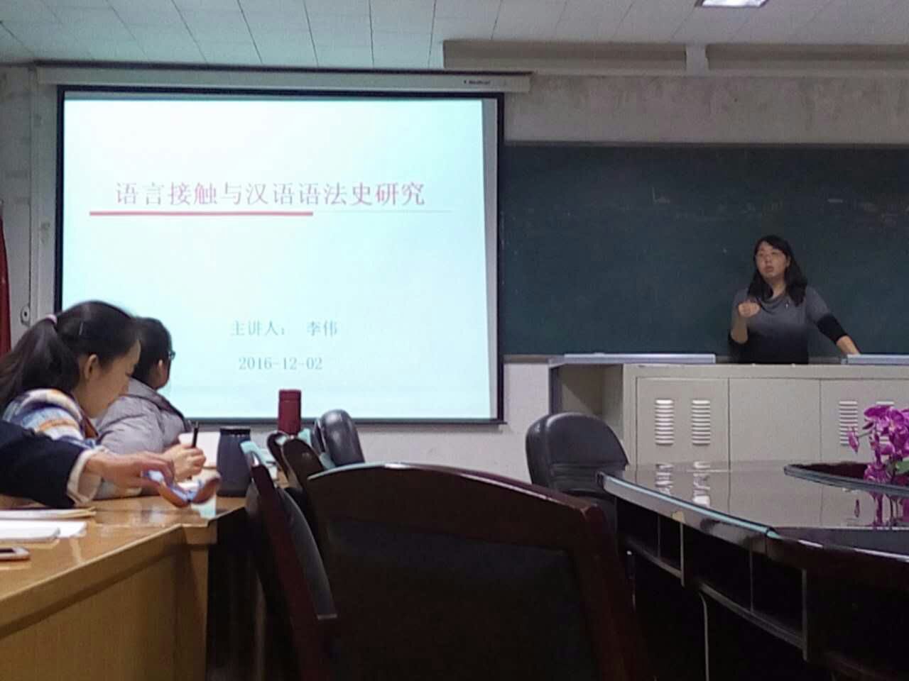 12月2日19:00,bg大游官方网站硕士生导师李伟副教授在12号楼五层会议室作了题为“语言接触与汉语语法史研究”的学术报告。
