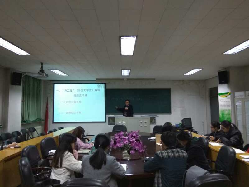 2017年11月15日19:00,bg大游官方网站副教授、硕士生导师高超在12号楼5层会议室作了题为“‘马工程教材’《外国文学史》编写特点与配套教学改革”的学术报告,比较文学与世界文学专业的研究生到场听取了此次报告。