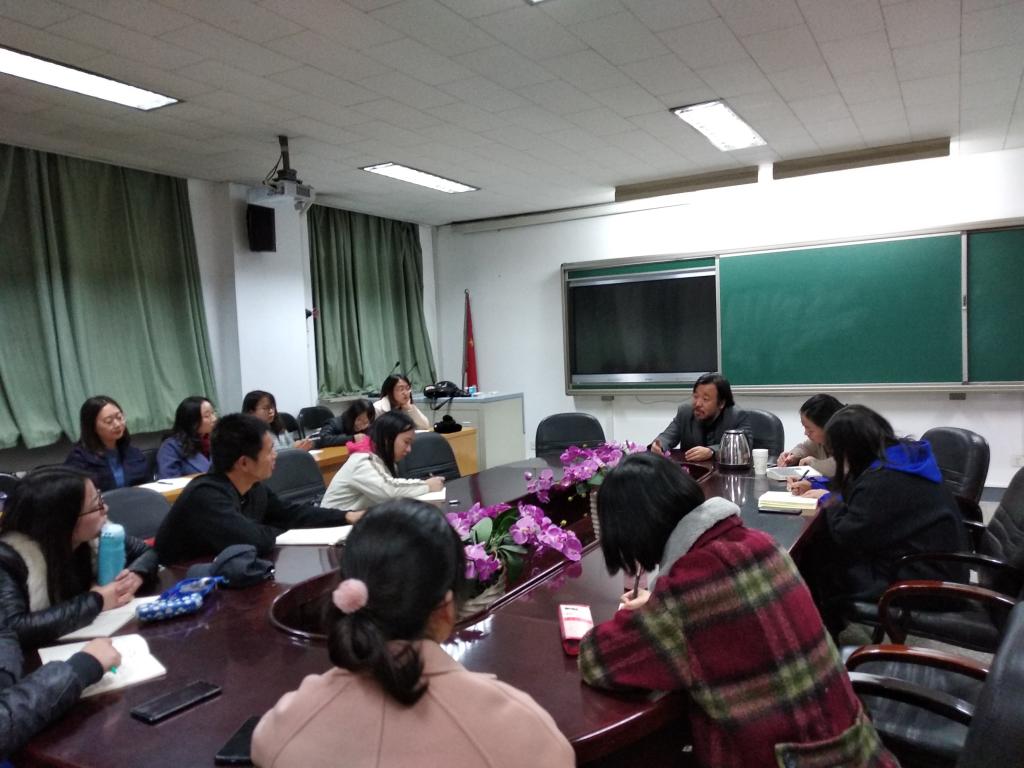 2018年11月7日,bg大游官方网站硕士生导师栗永清博士、刘二永博士在12号楼5层会议室作“文艺学研究的对象与方法”的学术讲座,文艺学专业的硕士研究生听取报告并进行了交流。