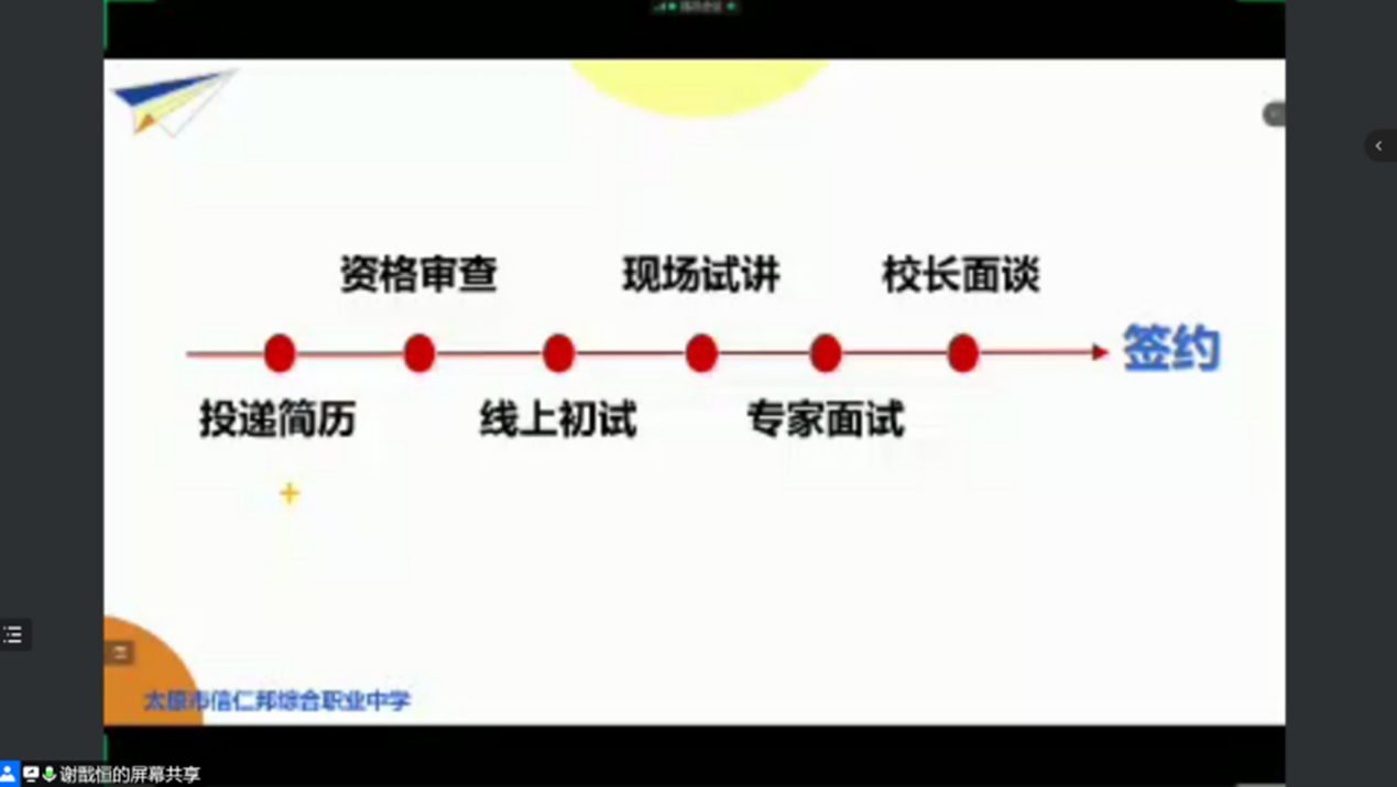 5月19日下午,bg大游官方网站特邀太原市信仁邦综合职业中公司的谢戬恒老师于线上开展“云端指途,就业有路”校园招聘宣讲会。