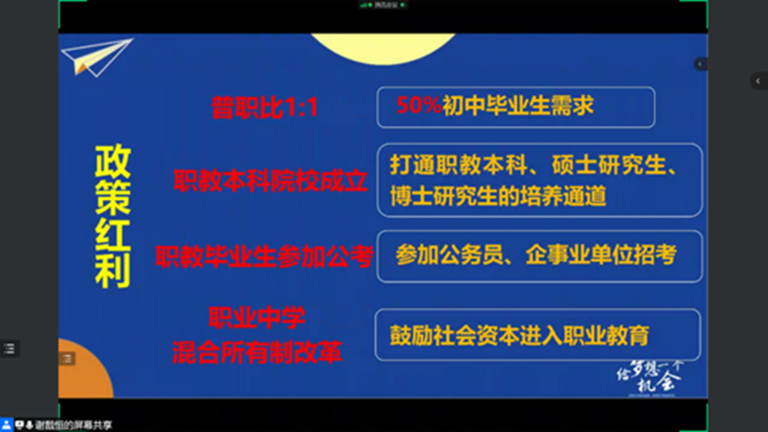本次宣讲会中,谢戬恒老师从岗位招聘和面试经验分享两方面进行讲解。谢戬恒老师为同学们介绍了太原市信仁邦综合职业中公司的综合实力、未来愿景、待遇福利等基本情况,着眼于当前“职业中学混合所有制改革”的政策红利指出了职业中学的未来发展潜力,并向同学们发出了择业的邀请。随后,谢戬恒老师就团队面试过程中需要注意的关键点与同学们进行了经验分享。整场宣讲会气氛活跃,同学们纷纷表示受益匪浅。