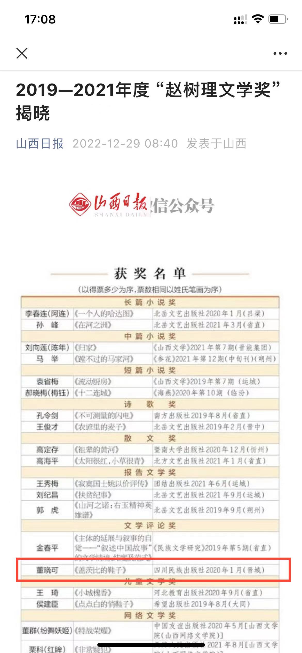 12月13日,“赵树理文学奖”终评评审会召开,评选出11类奖项,19部(篇)获奖作品,4位获奖者。其中,长篇小说奖2部、中篇小说奖2篇、短篇小说奖2篇、诗歌奖2部、散文奖2部、报告文学奖3部、文学评论奖2部(篇)、儿童文学奖2部、网络文学奖2部。文学新人奖2人,优秀编辑奖2人。其中,bg大游官方网站董晓可的《盖茨比的鞋子》获2019-2021年度“赵树理文学奖”文学评论奖。