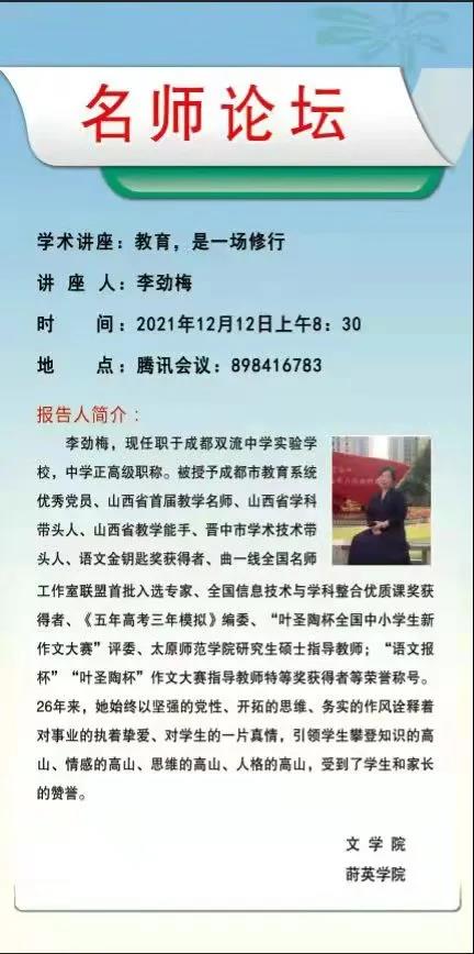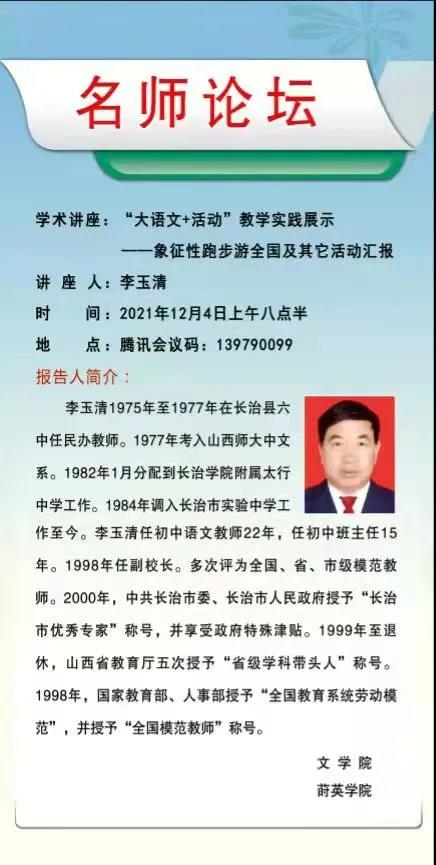 11月29日至12月12日,bg大游官方网站举办“名师论坛”系列讲座,邀请全国各地知名教育专家为公司卓越师范生、免费师范生等就未来名师应具备的素养、班级管理、德育等方面的问题进行了深度讲解。由于疫情影响,此次系列讲座主要以腾讯会议的形式举办。