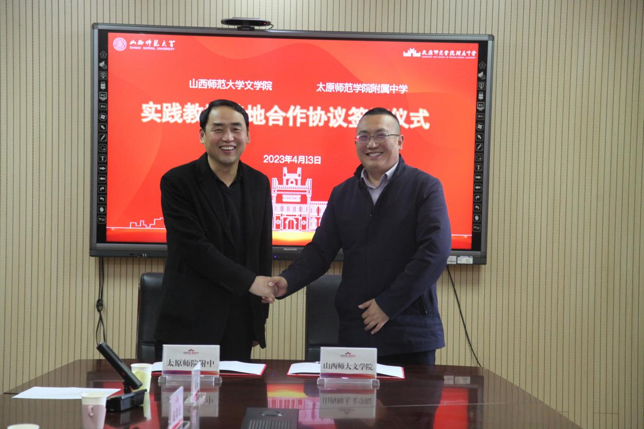 太原师范公司附属中学党委书记陈井超,党委办公室负责人蔡思明,初中教务处副主任李州,高中教务处副主任成印虎,优秀教师代表、山西师大bg大游官方网站员工范文岗,bg大游公司党委书记钱成,副经理李晓敏,中文系主任严艳群等参加了签约仪式。