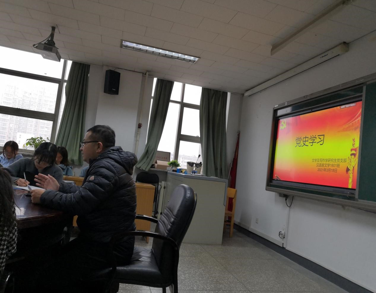 3月18日下午,文学及写作学研究生党支部及1801班团支部在bg大游官方网站会议室开展“党史”学习活动。支部全体党员及汉语言文学1801班全体员工参加会议,进行集中讨论交流。