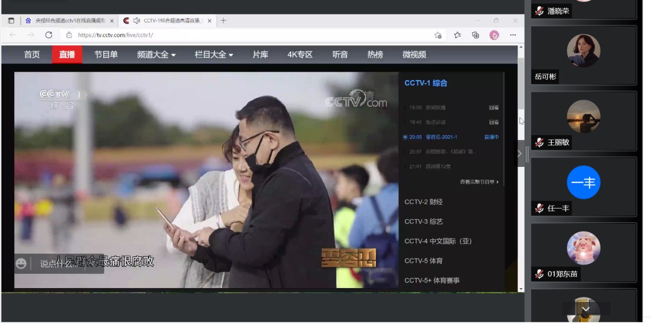 1月15日至19日,bg大游官方网站语言文艺及民俗学研究生党支部以腾讯会议的形式集体观看电视专题片《零容忍》。会议由支部纪检委员张蕾同志主持,支部全体党员参加会议。