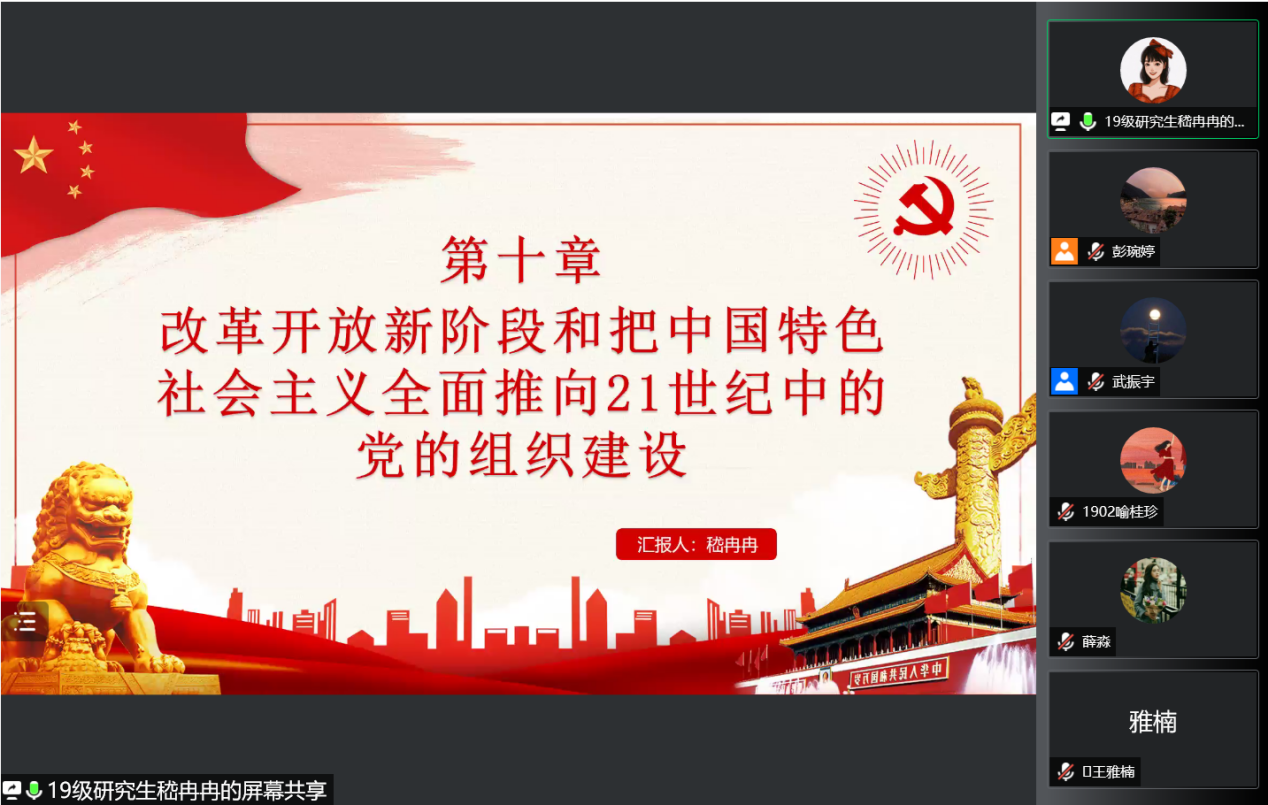 3月4日,bg大游官方网站“学雷锋,送温暖”小组员工党支部在腾讯会议开展学雷锋纪念日与《中国共产党组织建设一百年》第十章主题党日活动。会议由支部副书记武振宇主持,支部全体党员参加。员工党员嵇冉冉同志担任主讲人。