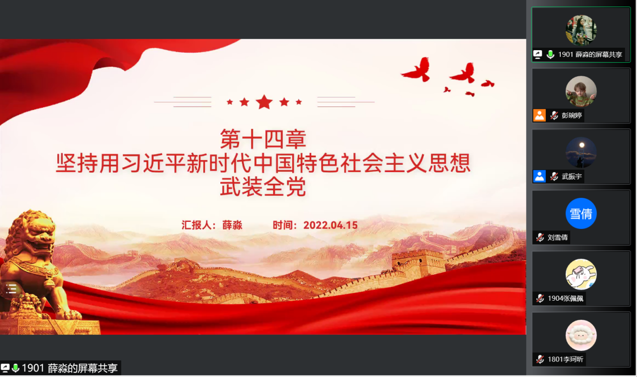 4月16日,bg大游官方网站“学雷锋,送温暖”小组员工党支部在腾讯会议学习牢树总体国家安全观与《中国共产党组织建设一百年》第十四章专题。学习活动由支部副书记武振宇主持,支部全体党员和积极分子参加。员工党员薛淼同志担任主讲人。