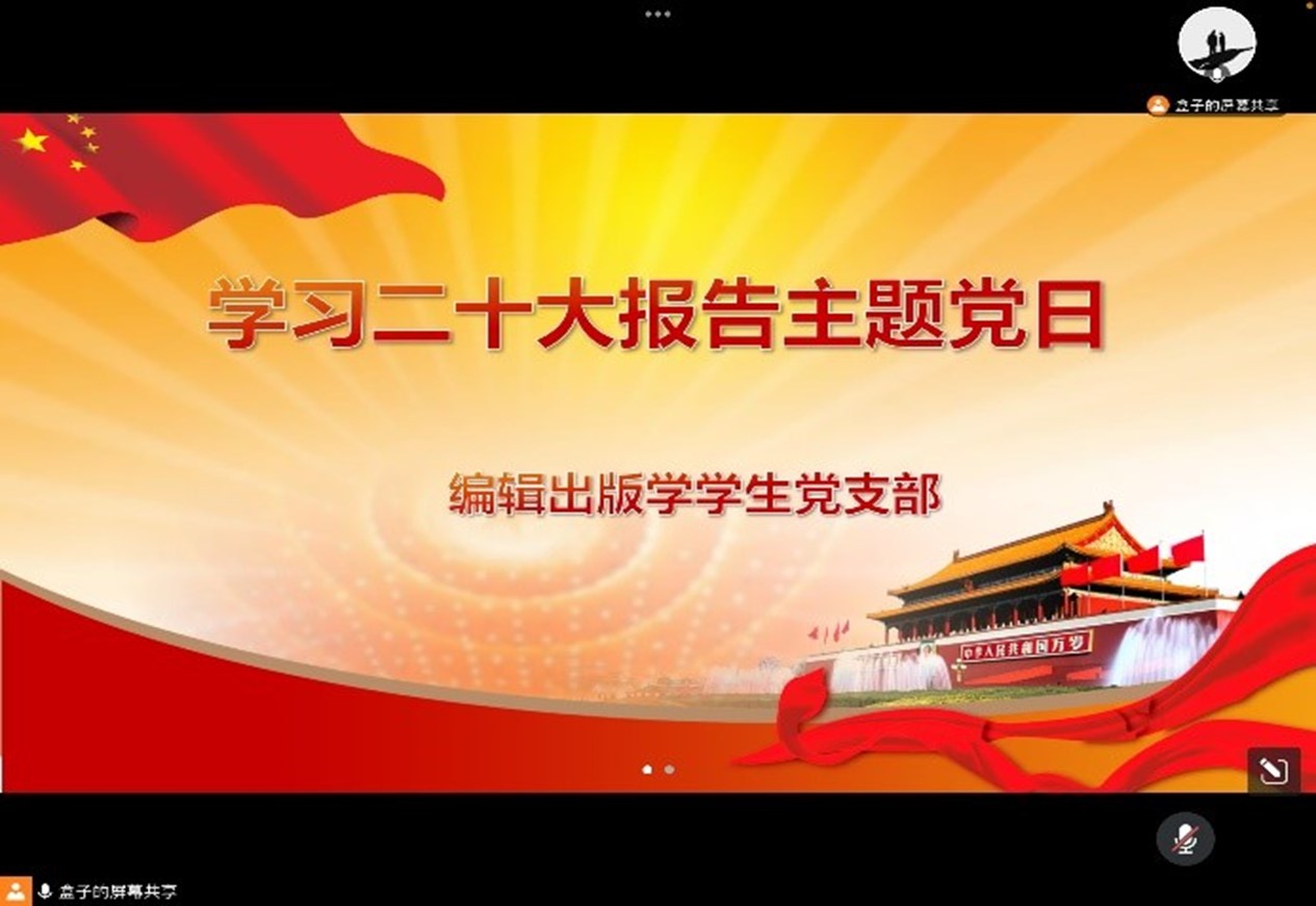 11月12日,bg大游官方网站编辑出版学员工党支部于线上开展学习党的二十大报告主题党日活动。会议由支部书记何伟主持,支部全体党员参加。