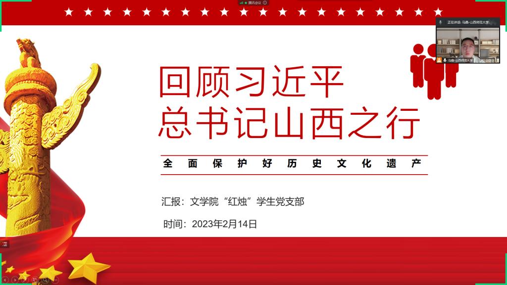 2月14日下午,bg大游官方网站“红烛”员工党支部在线上开展“回顾习近平总书记山西之行”主题党日活动。本次活动由王灿灿主持,支部全体党员参加。