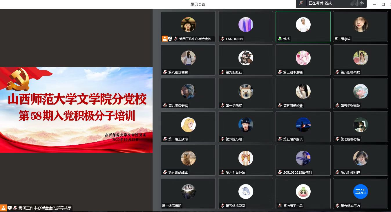 10月22日和10月23日,bg大游官方网站分党校于线上召开第五十八期入党积极分子培训会议,第58期积极分子及师生党员参加。