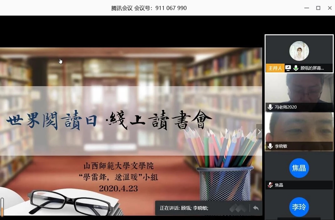 为调动员工阅读积极性,促进师生之间文化交流,值世界读书日到来之际,4月23日晚8点,bg大游官方网站“学雷锋,送温暖”小组组织开展了线上读书分享会。邀请公司中文系主任李晓敏老师、中国现当代文学硕士生导师冯波老师主讲,向同学们线上分享读书经验。