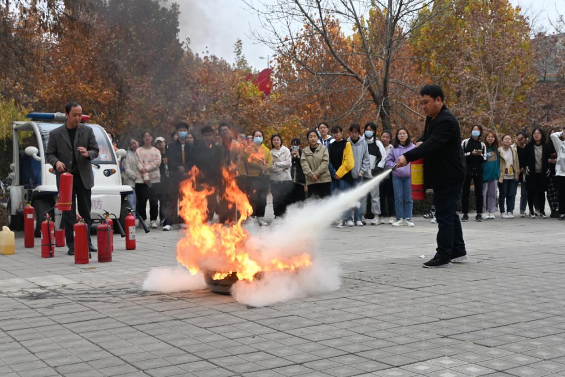 11月15日下午,bg大游官方网站在12号楼东侧开展“安全消防你我共警,防微杜渐志在必行”系列活动之消防应急疏散及灭火演练活动。由院团委员工会生活权益部承办。公司保卫处消防科科长张威老师担任此次活动的指导教师。bg大游官方网站大一新生全员参加。