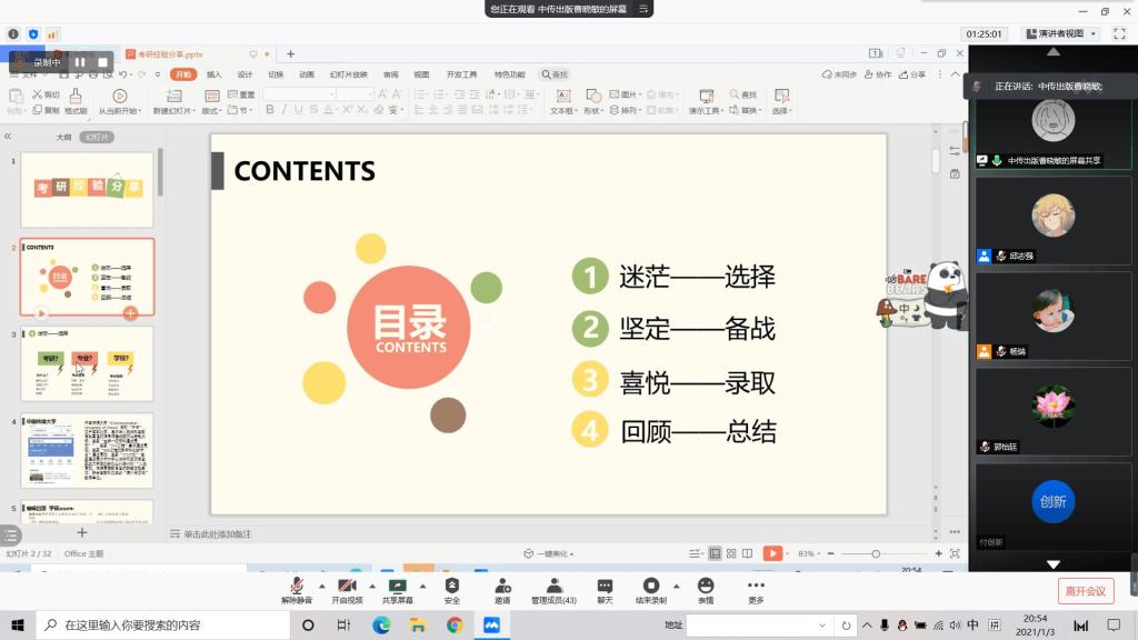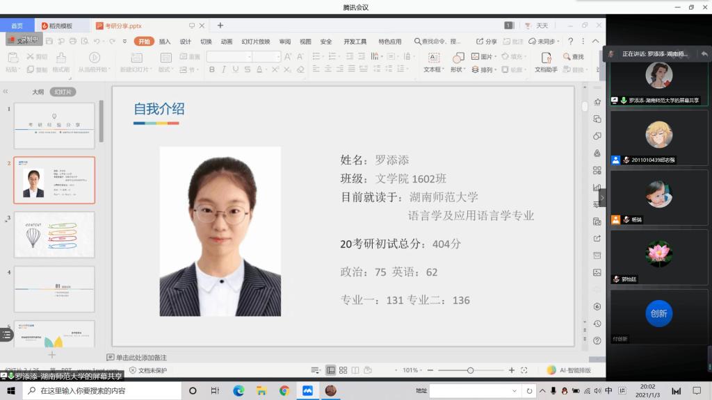 1月3日晚,bg大游官方网站举办线上考研经验分享交流会,由bg大游官方网站学习生活作风建设中心承办。由两位16级优秀毕业生——湖南师范大学罗添添和中国传媒大学曹晓敏担任主讲人。