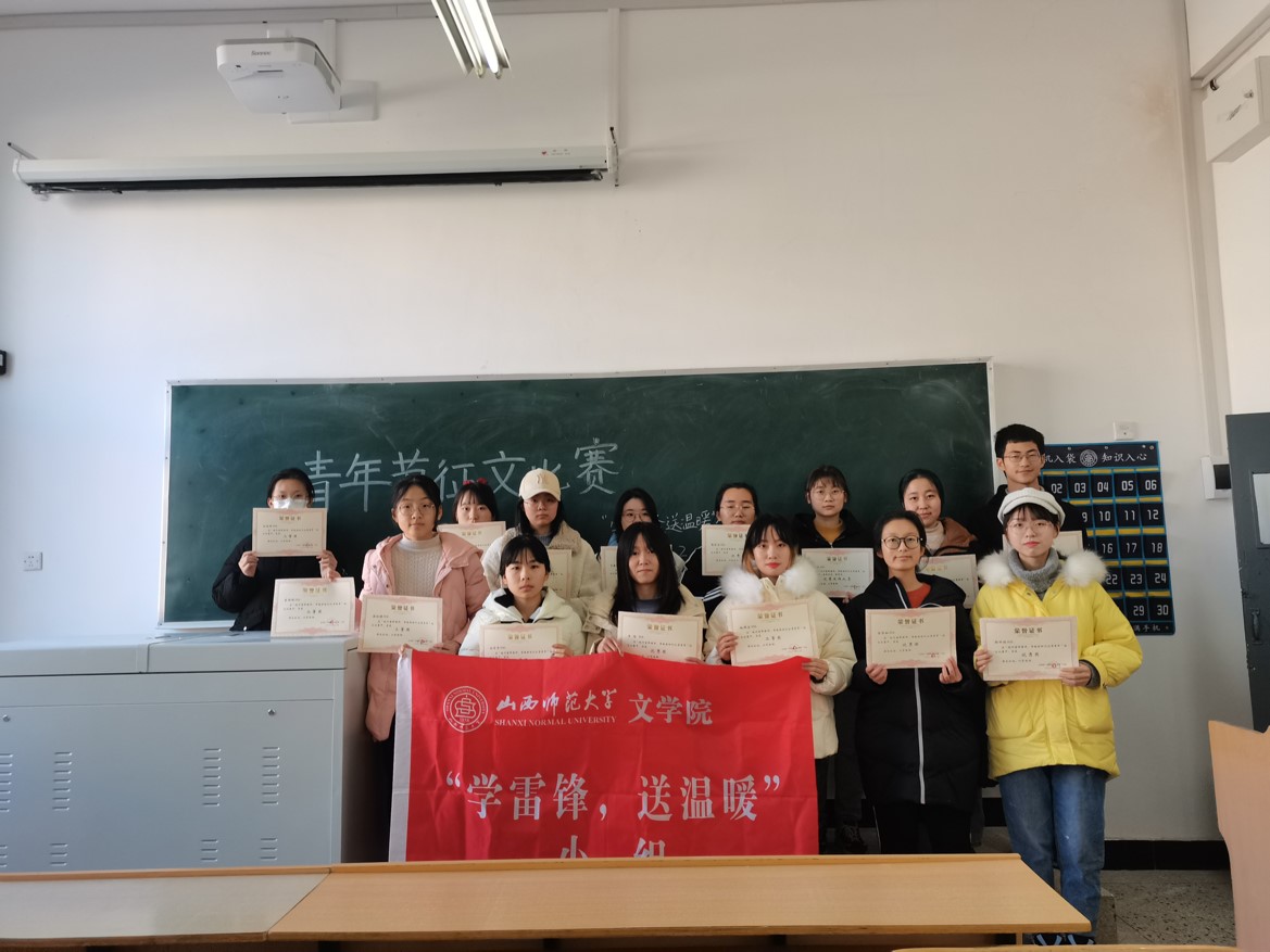 12月2日,bg大游官方网站“学雷锋,送温暖”小组在3206教室举行“践行雷锋精神,做新时代优秀青年”主题征文活动颁奖仪式。此次征文从11月19日开始至11月26日截稿,全校220余名同学参加。经层层选拔,最终评选出一等奖一名,二等奖二名,三等奖三名,优秀奖九名。
