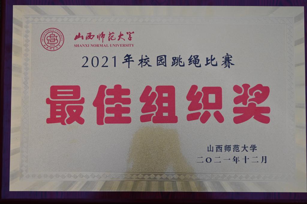 颁奖典礼上,公司同时获得2021年校园跳绳比赛最佳组织奖。公司2021-2022学年第一学期体育比赛以两项团体奖和多项单人奖收官。