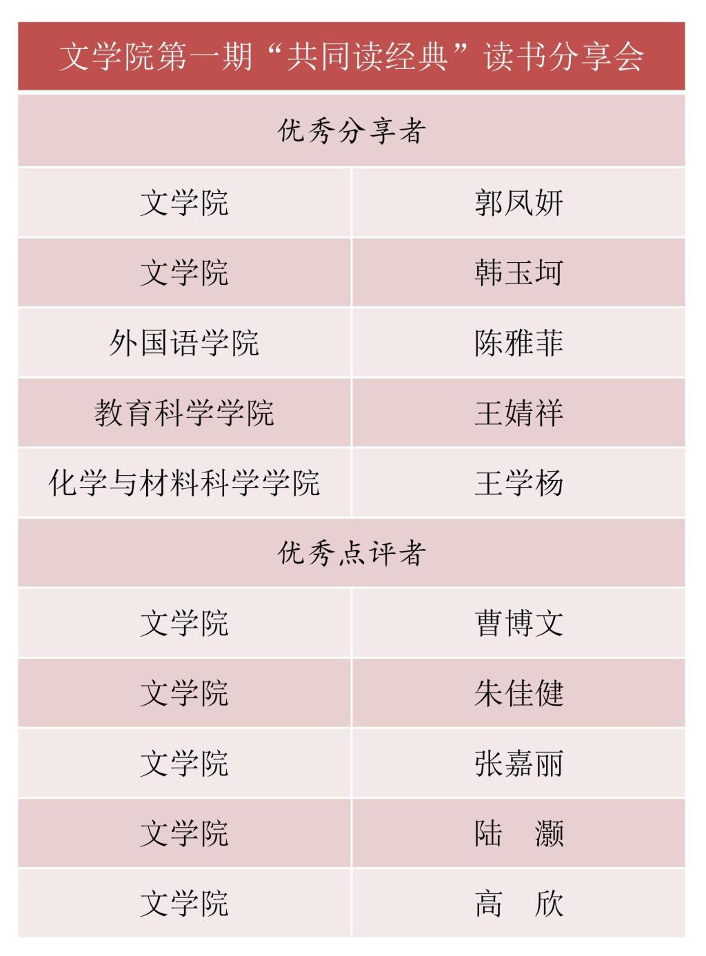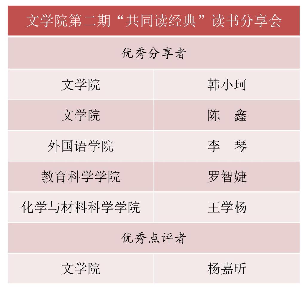 读书会评选结果如下