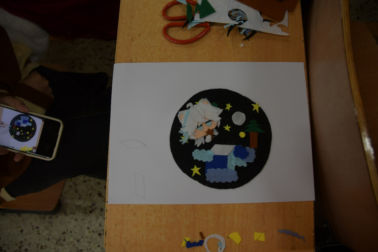 活动伊始,工作人员为同学们发放编织材料并介绍了本次编织活动的规则流程及注意事项。“编织艺术文化历史悠久,不同的绳编、穿珠组合,寄予了美好的祝福和心愿”,志愿者“小老师”们为同学们讲解编织文化和编制方法,在他们的指导下,同学们了解了编织的步骤并开始尝试动手创作,一条条手链、一个个中国结、一枚枚发卡以及风格多样的剪纸被心灵手巧的同学们制作出来。编织文化活动结束之际,大家将作品在QQ群内进行展示分享,并一起合影留念。