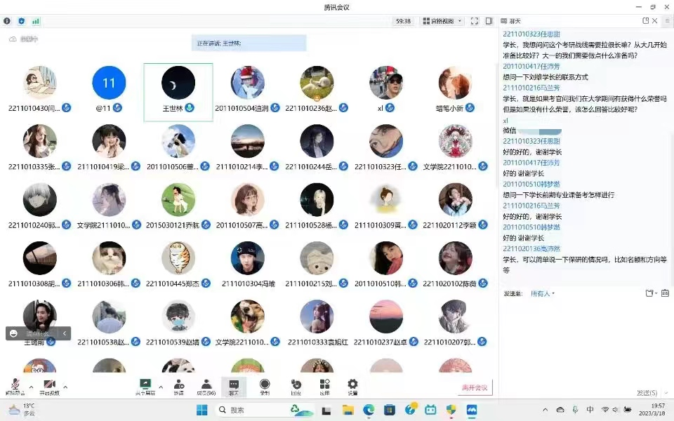 3月18日下午,bg大游官方网站员工会学习生活作风建设中心于线上举办考研复试经验分享会,1803班考取南京师范大学刘雄、1805班考取北京师范大学王世林担任本次会议主讲人,百余名员工参与活动。