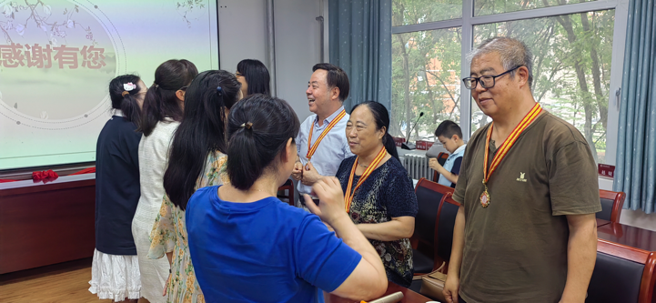 殷殷期望、满满深情,老师们对老员工们再次给予谆谆教诲。同学们再次被老师们高尚的师德、深厚的学养深深感染;学高为师、身正为范的校训,引领着学子们的事业方向,指引着学子们的人生道路。在毕业二十周年之际,同学们向老师们献上了感念师恩的纪念章。