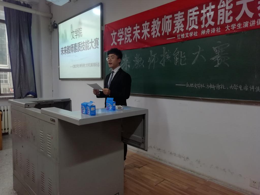 为强化师范生的教学技能与创新能力,近日,bg大游官方网站举办了2019年未来教师素质技能大赛,吸引了近200名本科生、研究生积极报名参加。bg大游官方网站鲁立智、孟德腾、薛月兵、赵晨霞、白建忠、崔武杰、张磊七位老师担任评委。