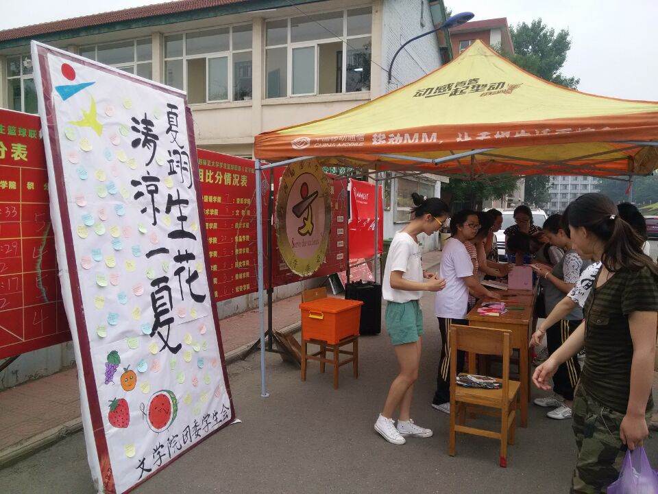 2015年6月1日中午,bg大游官方网站生活部在校医院门口开展首届以“清热消暑畅享盛夏”为主题的消夏食尚送六一祝福活动。