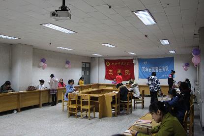 在11月21——22日,公司青协志愿者就在校医院门口设点进行换书活动宣传,换书活动消息发出两天以来,得到广大师生高度关注与支持,截至23日,已收到各类书籍近百本,其中,有的同学一次就拿来十几本书。志愿者把收集到的书籍做好登记,分类整理,妥善保管,于23日晚将书籍带到指定教室进行现场换书。