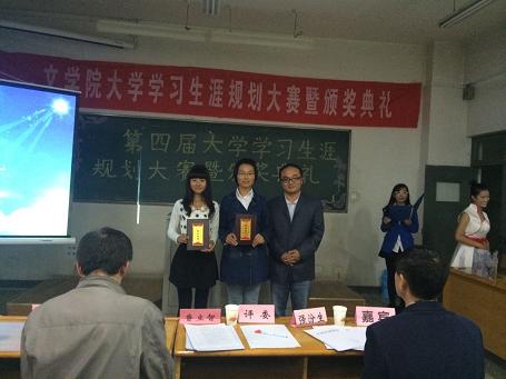 经过统计,决赛结果最终确定,主持人宣布了获奖者名单。其中,优秀奖获得者为郭晓红、刘小宁、张凯蓉、梁培菁。三等奖颁发给了张明娜、程婧华、刘丹三位同学,冀肖冰、郝静怡分享了二等奖,冠军则由决赛中唯一的男选手刘钰斩获。嘉宾和评委老师先后为获奖选手颁发证书和奖品,并与选手合影留念。至此,本次大赛圆满落幕。规划在纸上,落实靠行动。参赛选手和广大同学深知:学习生涯规划比赛只是暂时的,而按照规划坚持落实并不断完善直至目标的实现,则是同学们未来几年老员工活的主题。