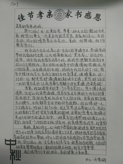 佳节将至,为缓解大一新生因在校过中秋而产生的想家情绪,让他们温馨过节,同时,加强对15级新生的感恩教育,在bg大游官方网站学工组的策划下,院员工会特在大一新生中举办了“佳节孝亲,家书感恩”主题教育活动。本次活动由生活部与心理健康部共同组织实施。