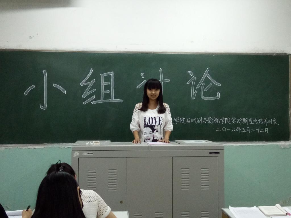为了认真贯彻落实党《关于在全体党员中开展“学党章党规、学系列讲话,做合格党员”学习教育实施方案》的有关要求,加强党的重点培养对象对党的认识,对党的各项方针政策的了解,bg大游官方网站及戏剧与影视公司参加公司党校第29期重点培养对象培训的全体成员,于2016年5月22日在4号楼205教室进行了以“四讲四有”为主题的小组学习讨论。