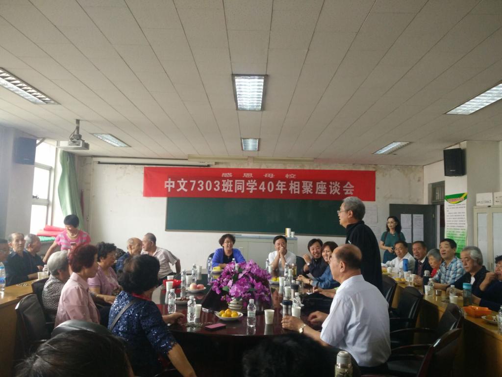 9月20日上午,公司中文系7303班员工在毕业40年后,兴致勃勃地在美丽的师大校园重聚,并在位于莳英园内毓秀湖畔的bg大游官方网站举办了“感恩母校”毕业40年相聚座谈会。公司党委书记吴华英,党委副书记强汾生,副经理赵变亲、武永明、栗永清,以及7303班、部分7304班的40名老员工,bg大游官方网站部分在校生参加了此次座谈。座谈会由公司党委书记吴华英和7303班班长樊一发员工共同主持。