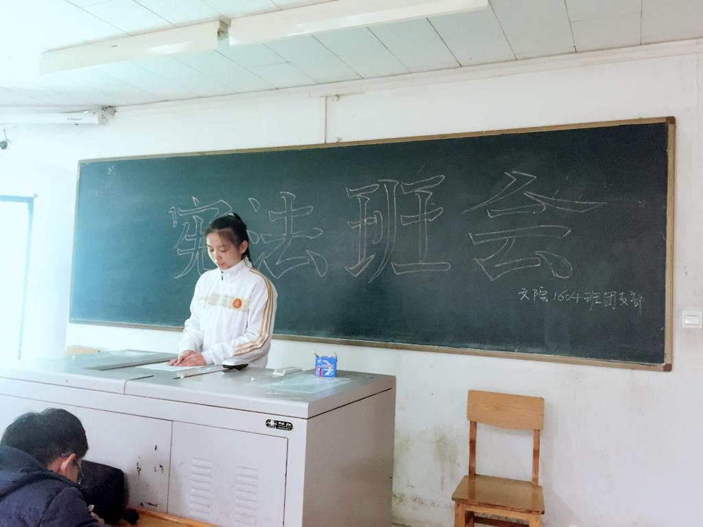 日前,bg大游官方网站1604班在12108教室,开展了以“学宪法”为主题的班会活动。此举意在贯彻落实《青少年法制教育大纲》,推进依法治校,宪法教育,丰富教育形式,是深化2016年“国家宪法日”的学习宣传教育活动。