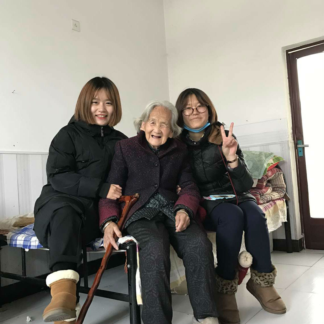上午九时许,志愿者们走进沙桥老年公寓。参加此次活动的志愿者都是第一次慰问敬老院的老人,大家都怀着些许紧张。来到敬老院后,没有想到,这些和蔼慈祥的老人们却给了大家亲近温暖的感觉,志愿者们也渐渐放松下来,和老人们谈心、交流。交流过程中,大家发现:其实,这些可爱的老人们一直在渴望与亲人的相聚,他们也只是需要一声关心,一句问候。听着老人们含糊不清的家乡话,志愿者们也只能靠猜测去理解他们想传达的意思。其中,一位89岁高龄的老奶奶还热情地给志愿者们递上了煮好的鸡蛋,开心地告诉我们这是女儿带给她的,还一个劲儿地夸赞我们的志愿者“好,好,真好!”简单重复的话语暖在同学们的心中;而当老奶奶提到孩子们没有更多的时间陪护她时,又透着一阵淡淡的忧伤。对此,同学们一时不知如何回答,只能很用心地倾听或是同这些素不相识的老人们聊天。同时,大家分工协作帮助老人们打扫房间,进行卫生清洁工作。