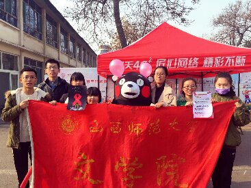 上午的“签字活动”在校医院门口面向全校师生展开。心理健康部工作人员在校医院门口拉起“让世界因爱而无艾”的横幅,并播放了关于艾滋病的宣传片,使路过校医院的同学们更加生动全面地了解了预防艾滋病的相关知识。活动现场,通过人偶熊本熊来调动气氛,吸引了大量同学驻足观看。筹办活动的工作人员热情宣传,同学们也积极参与,活动现场气氛十分活跃,乐趣不断。此外,心理部成员还亲手制作了红丝带在活动现场进行发放,以引起大家对艾滋病人的关注和关爱。上午的活动在部长的简单总结后圆满落幕,希望更多的人能够了解艾滋病,正视艾滋病,知道艾滋病的传播途径、发病机理和症状,以更好地遏制艾滋病的传播和蔓延,同时,也确实能够引起同学们对艾滋病防治问题的关注。