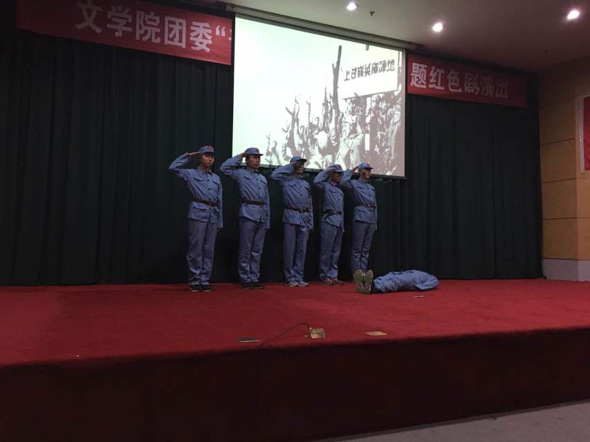 回望激情燃烧的岁月,用赤诚的心曲缅怀革命先驱不朽的足迹;聆听红色经典的温馨,用仰慕的情怀感受历史蕴含的感动,这是朗诵节目—《红色江河》向我们传达的情怀;忆当年,一艘南湖上的红船从黎明中驶来;看今朝,共产党带领人民谱写了挥洒热血、艰苦创业、坚持发展的壮丽篇章。九十五年的栉风沐雨,从奴役到解放,从贫穷向富强!没有共产党就没有新中国,这是1607班以《中国共产党的成立》这一剧目对中国共产党的致敬;红军战士永远不会倒下,父老百姓永远在殷殷期盼。他们的斗志永不会被磨灭,只因身后有着千千万万的百姓,1603班的《渺渺赤水漾情花》传达了红军战士与乡亲父老的浓浓鱼水情;从风雨飘摇的嘉兴南湖,到危机四伏的遵义古城;从灯影摇曳的延安窑洞,到红旗招展的人民大会堂……九十五年的天地沧桑,九十五年的风雨前行,九十五年来,中国共产党领导中国革命,不断从一个胜利走向另一个胜利,一段精彩的琵琶伴舞《唱支山歌给党听》唤起了我们多少幸福、美好的回忆,唤起了我们对革命先烈的缅怀之情;71年前的抗日战争涌现出何其多的英雄人物,他们为我们的民族做出了伟大贡献,已然成为了每个人心中追求的精神和坚贞的信仰,这是1604班的《风声》向我们传达的内容;当锦绣山河遍染了狼烟烽火,当家国天下掺杂了儿女情长,当冲冠一怒的将军兵临城下,当视死如归的巾帼以身殉国……古老的故事有了新的悲欢离合,一种雄壮的力量震撼你我,这是1606班《亮剑》带给我们的战士的坚决与感动!鸭绿江,经历了一段气吞山河的历史,目睹了一个民族捍卫尊严的壮举,谱写了一曲威武雄壮的旋律。如今又过了60年,究竟有多少人还记得“谁是最可爱的人”?又有多少人仍在怀念着那些志愿军战士?1601班的《不忘初心,继续前行》给了我们答案,我们要做的就是从无数共产党人手中接过这份保卫祖国的责任,不忘初心,然后继续前进!明月不谙离别苦,亦难谙离人心系天下的豪情。他成全家国,深深数载,终成国之栋梁!她独守小家,只为他可以安心奉献!这是1602班《家国天下》表达的情怀;当改革的春风吹遍中国大地,处处都是一片崭新的景象,1605班的《小岗村,大举动》带领我们见证了安徽凤阳小岗村的改革过程;有一种花,开在山间,不张扬,不做作,以耀眼的红静静等待黎明的到来;在革命期间,以这种花命名的革命曲目表达了广大人民群众对红军的无限拥戴;伴随着这支耳熟能详的《映山红》在演出现场被唱起,演出也接近了尾声。