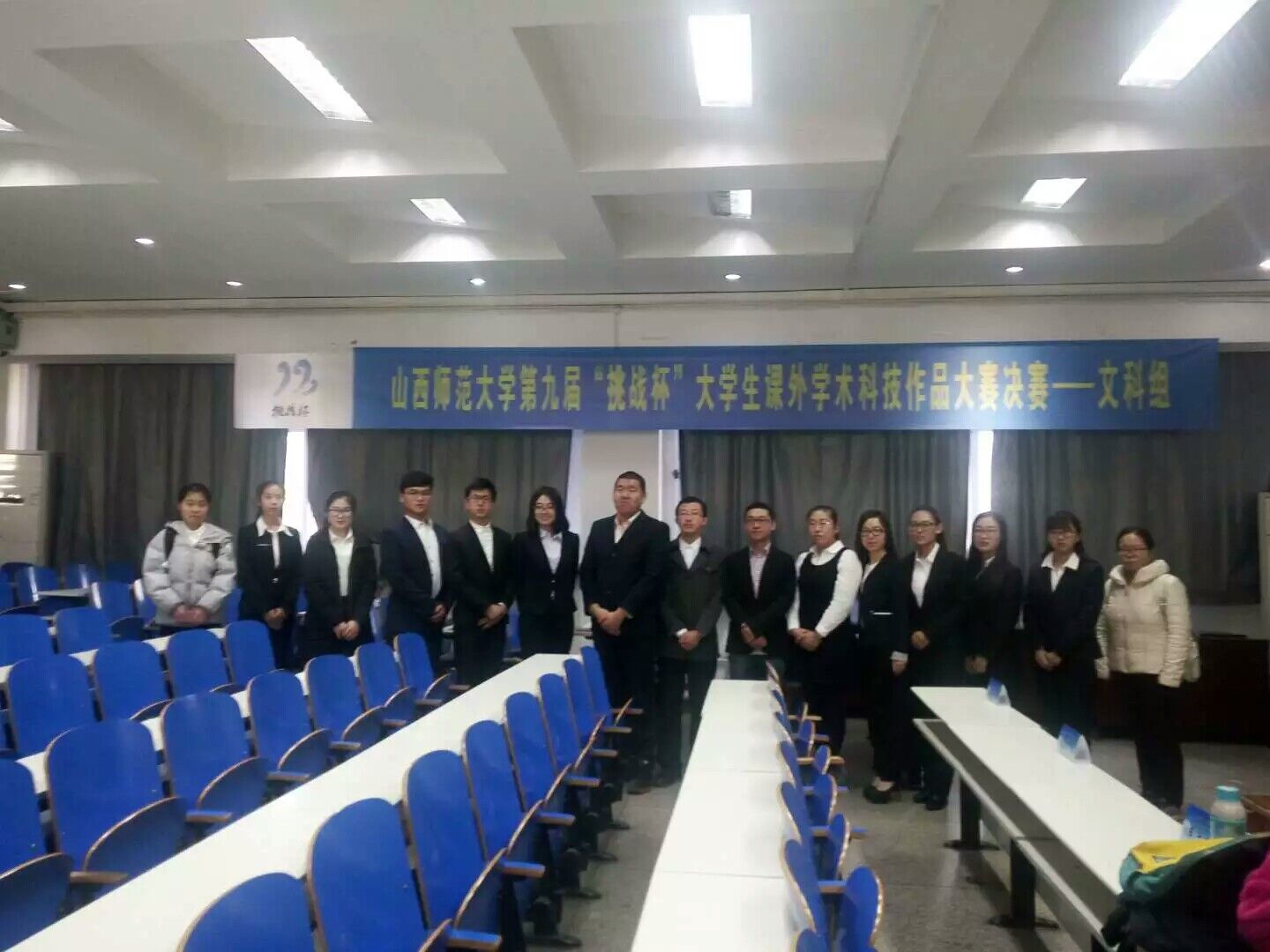 于上午进行的决赛以作者答辩的方式进行。文科组共有15份作品进入决赛参与答辩,分为ppt汇报和评委指正点评两个部分。决赛中,公司岳文凯同学第五位上场,以独特的台风开场吸引了众位评委与同学,其所汇报的题目“非遗生产性保护与非遗传承人研究——以山西侯马皮影代表性传承人赵翠莲为例”,凭借不同寻常的视角和清晰条理的结构,结合众多有趣的举例赢得了满堂喝彩,评委点评环节中多位教授均予以了肯定,都表示“调查非常有意义,可以再进一步深入地挖掘”,并对论文的不足点提出了改进意见,表达了对岳文凯同学后续研究的殷切期望。刘文娟同学以扎实的实地调查,详尽的专业介绍,带领评委与同学领略了临汾威风锣鼓的魅力。范嵘嵘、殷慧琳、李慧娟、陈婕、阎云龙、武振宇同学也分别结合自己所研究的内容给众多听众带来了别样的体验,让众多同学感受了历史的魅力、古村落的气息和非遗的精巧。