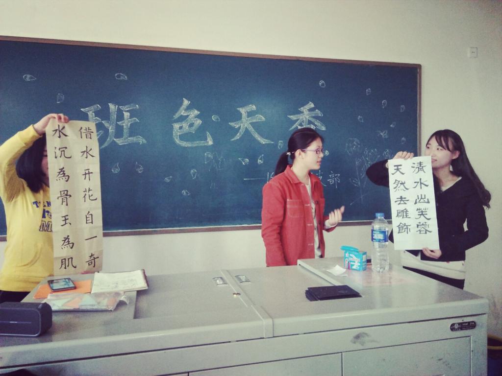 “女生魅力展示”环节让我们领略了5班女生的才艺。刘璇同学展示了自己的书法作品,软笔字“清水出芙蓉,天然去雕饰”“借水开花自一奇,水沉为骨玉为肌”,同时表达了自己对同学的祝福,她希望每一位美丽的女孩都能如出水芙蓉般质朴纯洁,不依靠刻意的外在修饰,努力提高自身修养,做一个有内涵的人。她还说水仙仅依靠清水便能生长开花,它虽不像寒梅那样傲骨迎风,却也纯净无瑕,高洁脱俗。希望我们也能同水仙一般摒弃污浊,追求一颗纯洁的心,在生命中不惧艰难,丰厚内在。