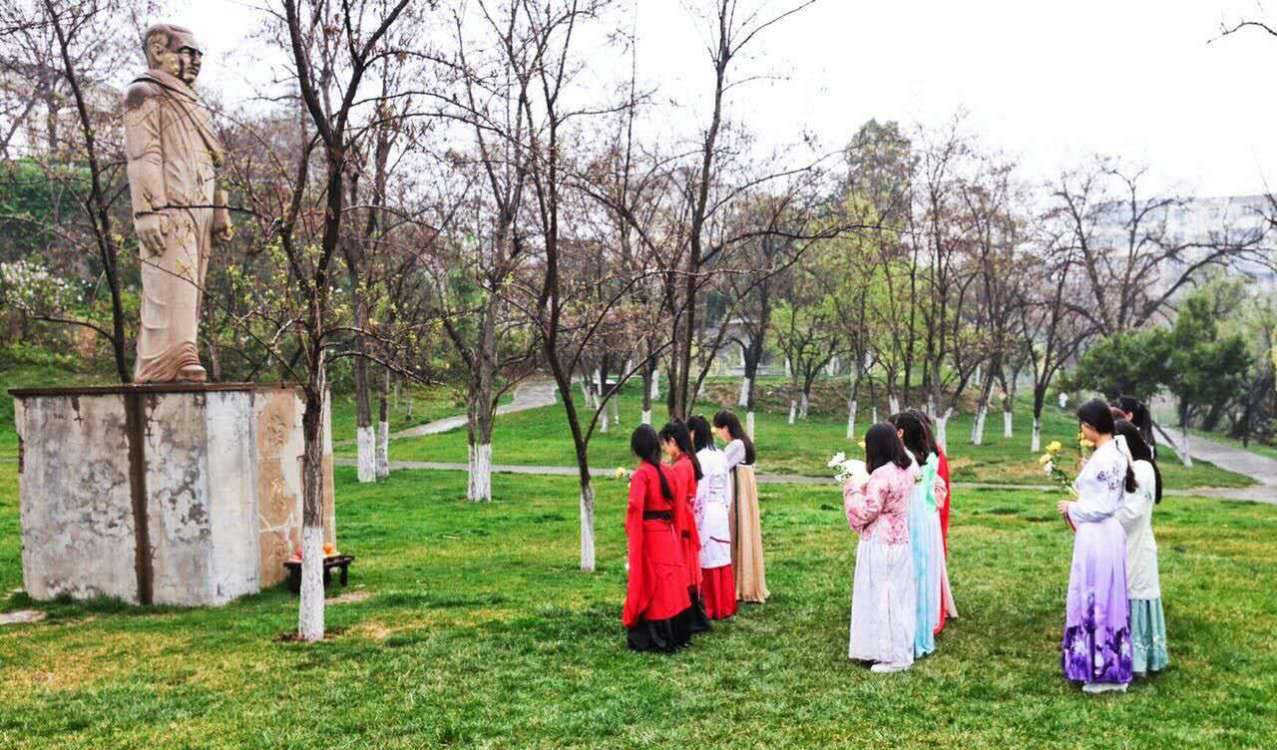 清明节作为中华民族的传统节日之一,是人们祭奠祖先、缅怀先人的重要节日,它有着悠久的历史、深厚的文化传统和丰富的民俗内涵。适值陶行知先生逝世七十一周年,为了增强老员工对传统节日的认同感,追忆先贤,传承大师精神,由公司黄河民俗文化研究所、民俗学社主办,朝歌汉服社、民间美术协会、临汾公司萤光读书会协办的“追思先贤风范,传承大师精神”2017年清明祭暨纪念陶行知先生逝世七十一周年公祭活动于4月4日在莳英园陶行知塑像前举行。
