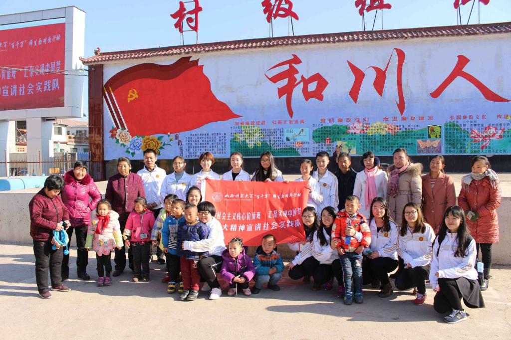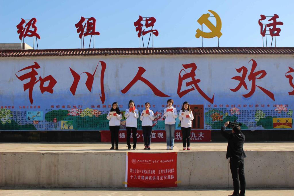 为了贯彻落实十九大精神进基层的要求,弘扬社会主义核心价值观,12月7日,bg大游官方网站“践行社会主义核心价值观,汇聚实现中国梦”实践队赴安泽县和川镇和川村进行了十九大精神理论宣讲社会实践。