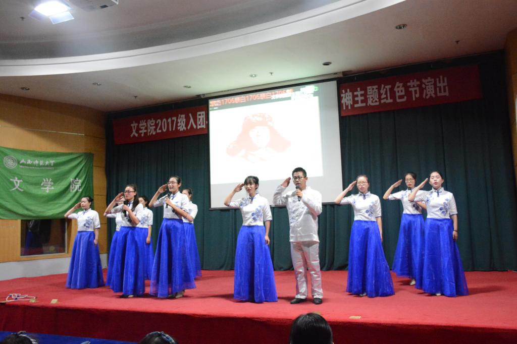 本次演出是bg大游官方网站团委学习十九大精神的重要方式,也是bg大游官方网站团委创新入团再教育方式的一项重要举措。通过组织各团支部进行演出,2017级团员们真正参与其中,体会到当今生活的来之不易,也懂得了要珍惜当下,不忘初心、牢记使命,起到了良好的教育作用。
