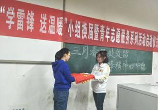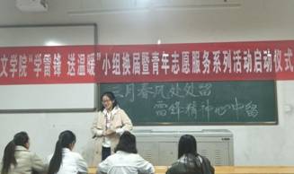 3月5日是我国的学雷锋日,为了进一步弘扬雷锋精神,传播中华优秀传统文化,3月5日晚,bg大游官方网站“学雷锋,送温暖”小组在12109教室举行了换届暨青年志愿服务系列活动启动仪式,小组全体成员参加仪式。