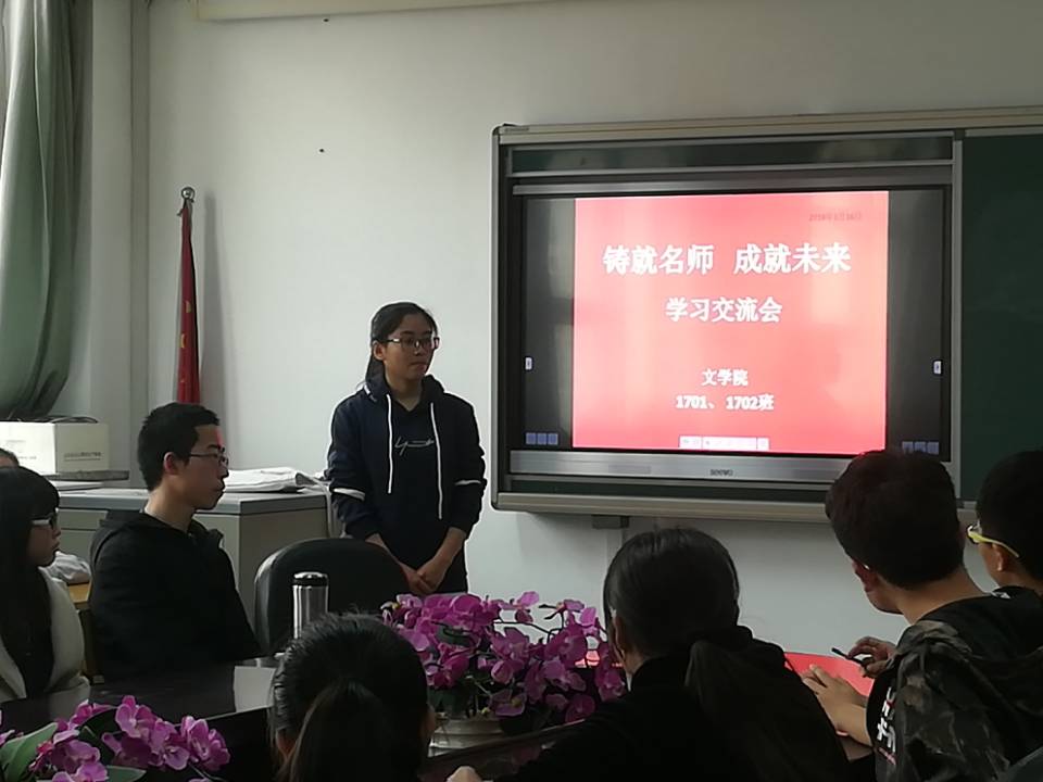 2018年3月16日下午,为了更好地让同学们清晰把握教师素质养成的过程,提升教学能力,有序地制定在校期间的学业规划,更好地成为一名优秀的未来人民教师,bg大游官方网站1701、1702班特别邀请获得第五届全国师范生教师技能大赛语文组二等奖的王明清学姐参加了“铸就名师,成就未来”学习经验交流会。