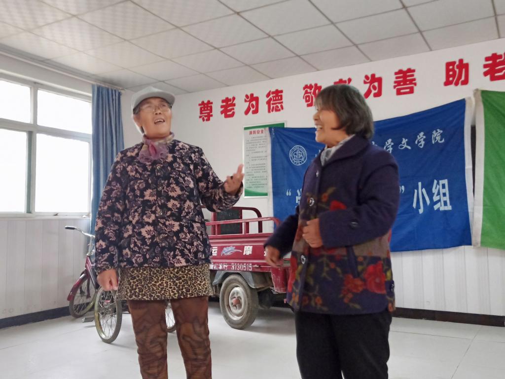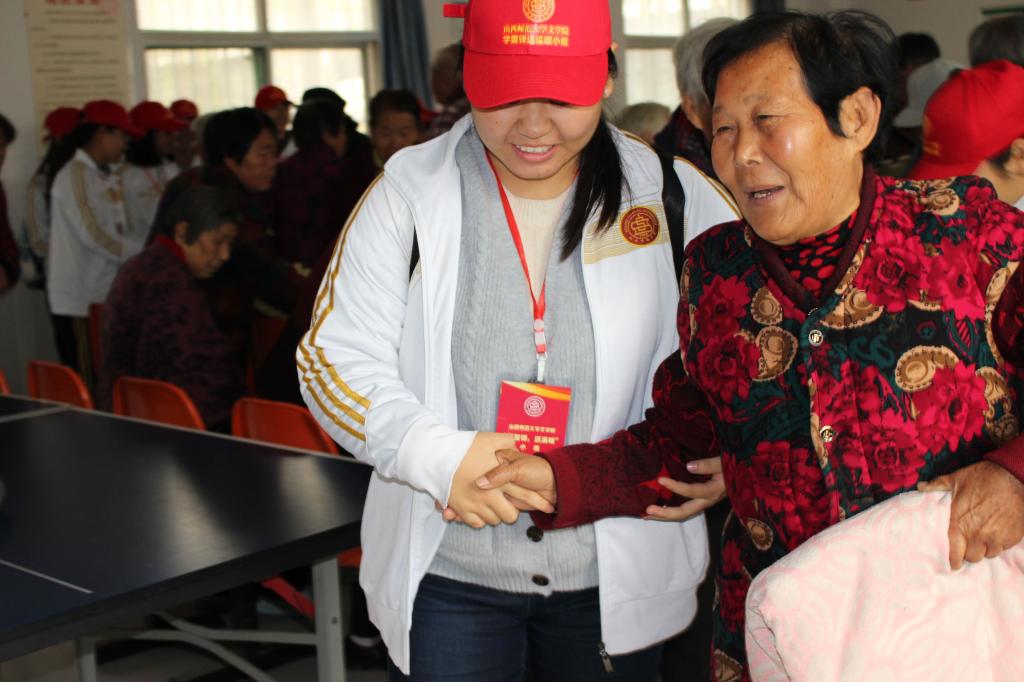上午八时,志愿者们到达沙桥敬老院后,马上有序进入老人们的房间主动开展志愿服务:有陪老人们聊天的,所涉及的话题从居住环境、老人们平日活动到他们的老故事和旧回忆;有为老人打扫卫生、端早饭打热水的;有搀扶着老人在院里散步并分发礼物的……敬老院里充满了欢声笑语。一阵忙碌后,志愿者们在敬老院活动中心为老人们送上了精彩的节目。《红星闪闪》《我的祖国》《明天会更好》《常回家看看》等歌曲引起了老人们的共鸣,其中,两位老奶奶激动地起身合唱,场面温暖感人。