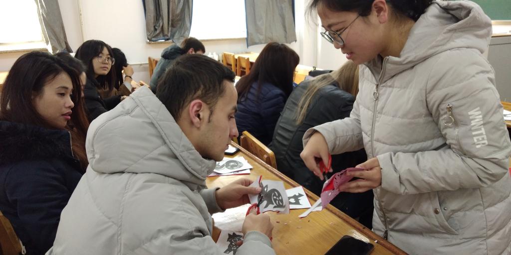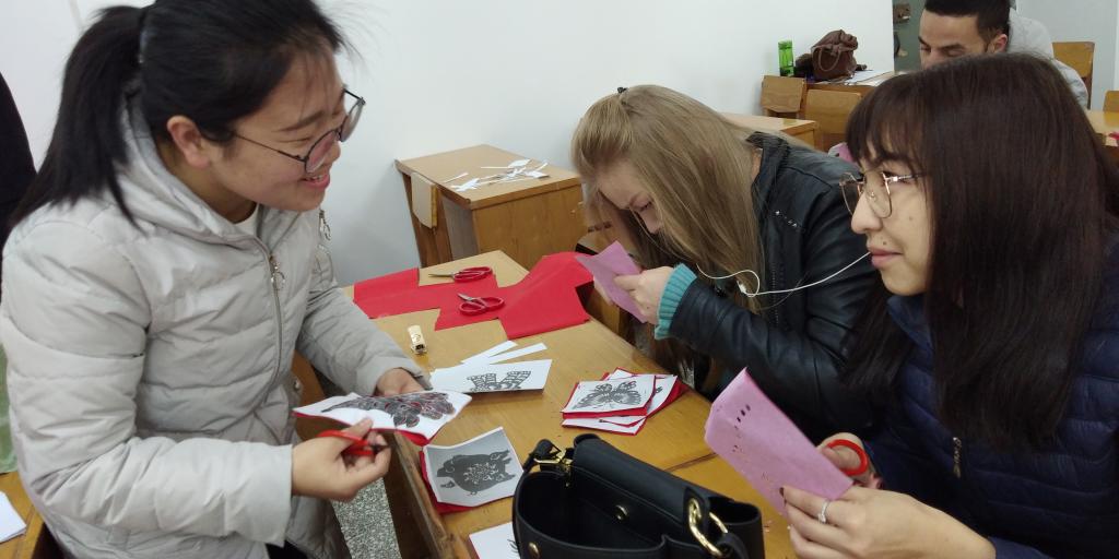 民俗学社负责人刘颖采取文化宣讲与技巧分享相结合的方式,帮助职工们更好地了解中华民族优秀传统文化的相关知识,并学习中国传统手工技艺——剪纸。活动中,职工们精心挑选了自己喜欢的剪纸图样,在民俗学社成员的帮助下顺利、圆满地完成了自己的剪纸作品。语言、地域的差异并没有阻挡优秀文化的传播,友谊在双方的交流和分享中一点点建立,现场氛围十分和谐、融洽。