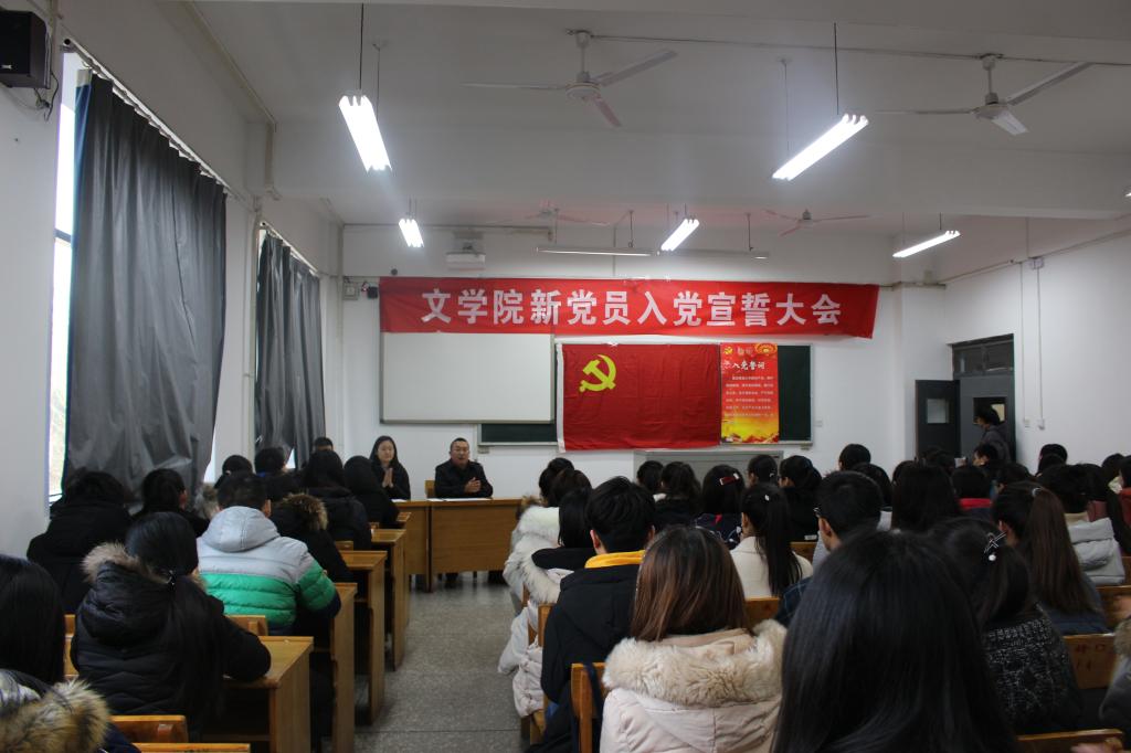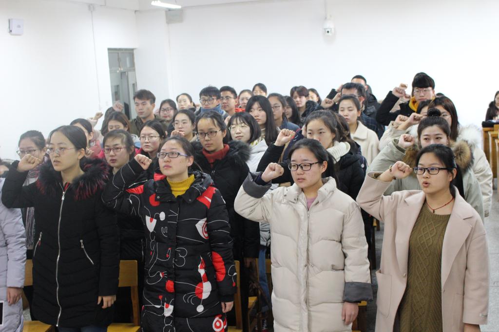 12月8日上午9:00,bg大游官方网站2018年新党员入党宣誓仪式在12206教室正式开始。公司党委副书记钱成、团委副书记樊琳琳、编辑出版学及汉语国际教育员工党支部书记何伟出席仪式。公司正式党员、预备党员、新发展对象及入党积极分子代表100余人参加。