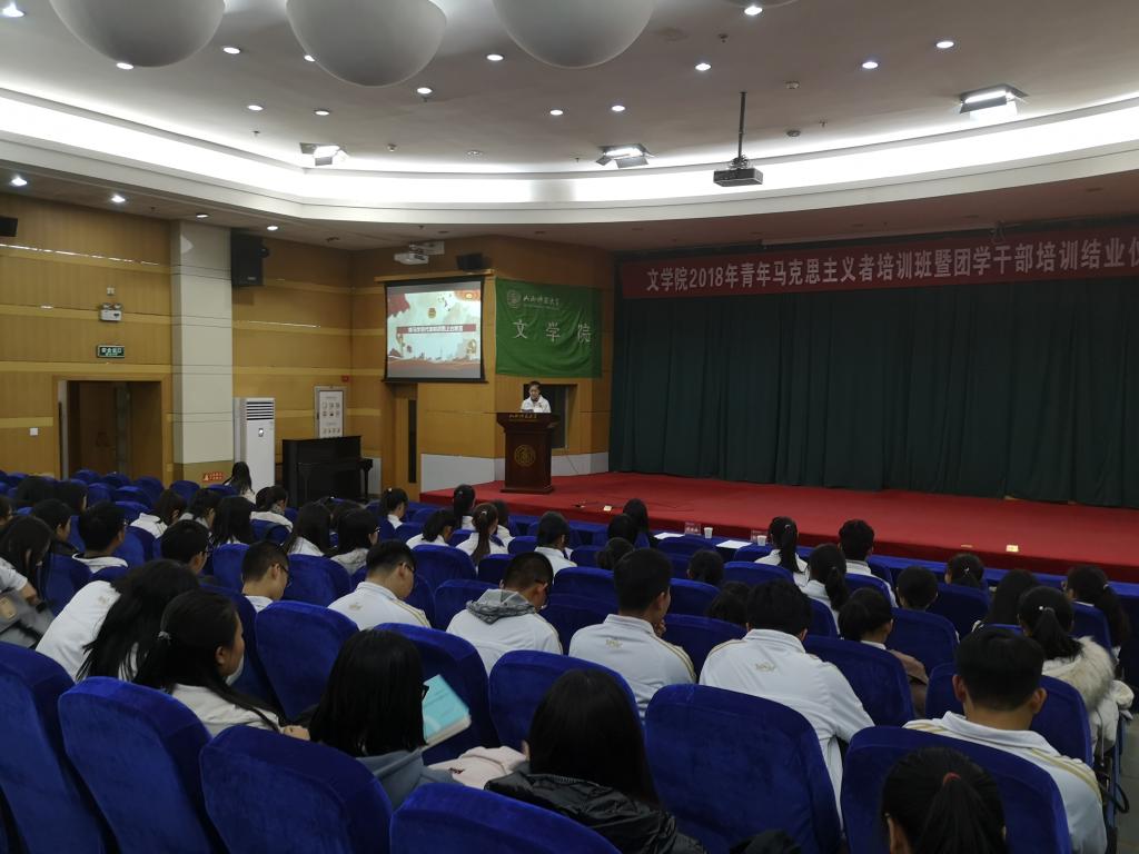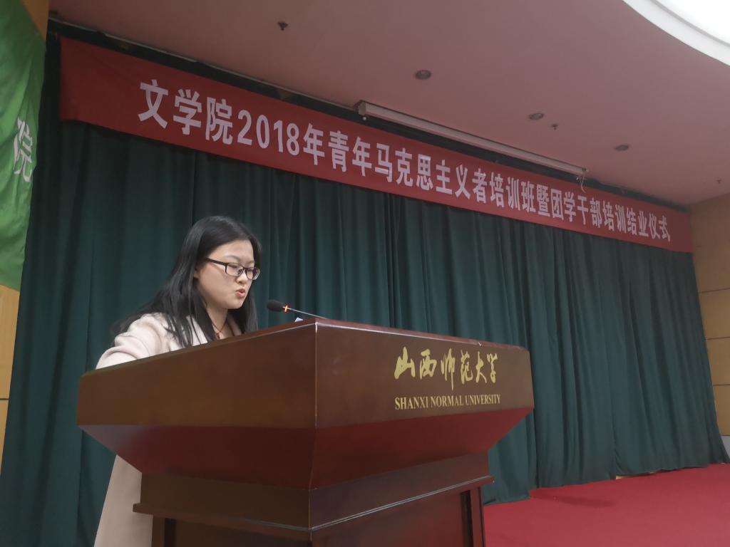 12月10日晚,bg大游官方网站在科学会堂二层报告厅举行2018年青年马克思主义者培训班暨团学干部培训结业仪式。团委副书记樊琳琳、员工团委副书记杜晓玥出席现场。18级青马培训班全体学员参加。