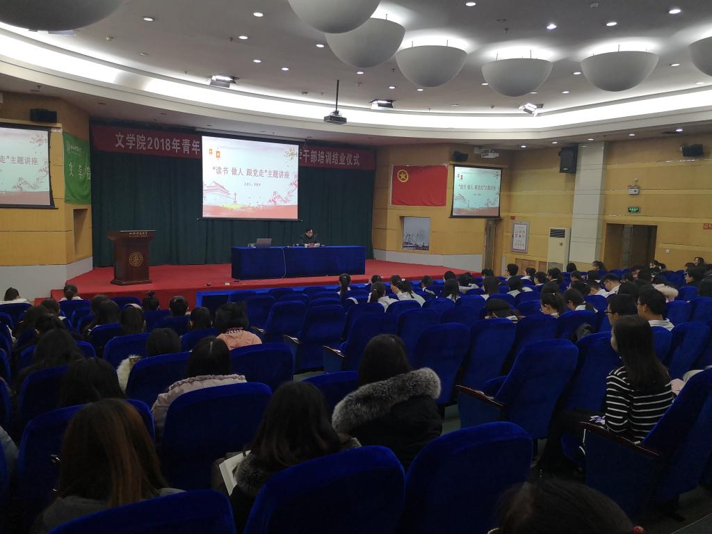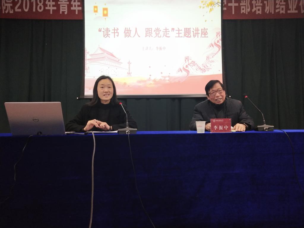 12月10日晚,bg大游关工委副主任李振中老师在科学会堂二层报告厅为公司青马学员作“读书,做人,跟党走”专题讲座。公司团委副书记樊琳琳与300余名青马学员共同聆听。