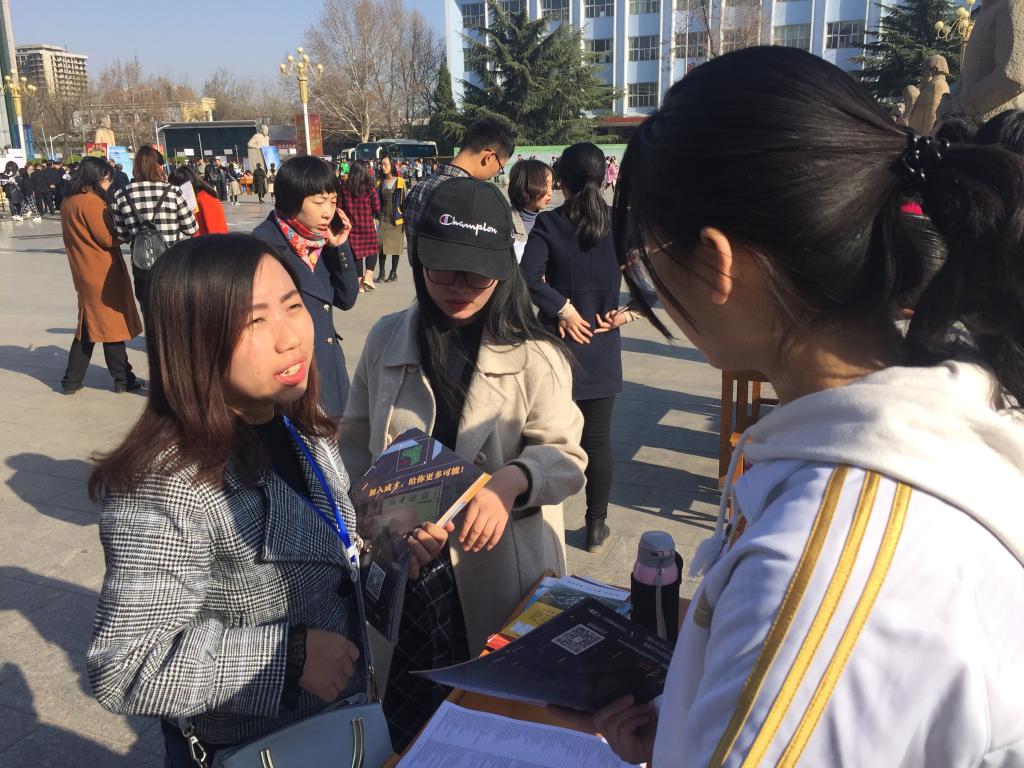 现场,公司党委书记吴华英一行四人与用人单位深入交流,介绍公司目前的人才培养情况和毕业生的学习表现状况,积极为他们宣传推荐。同时,院领导还与现场投递简历的员工进行交谈,询问洽谈情况。