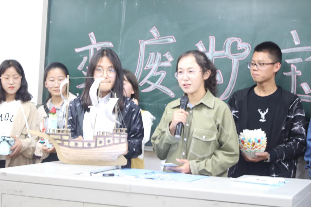 决赛中, 41份作品被分为三组进行展示。比赛包括作品展示和设计理念解说等环节,采用现场评分和线上投票的方式展开。由纸板糊成的三桅帆船、用一次性筷子制作的鼓楼模型……一件件构思巧妙、设计精美的作品呈现在大家面前。选手们从作品的制作谈起,为大家讲述了作品所要传达的主题和内涵,号召同学们要善于通过不起眼的小物件发现生活中的美。