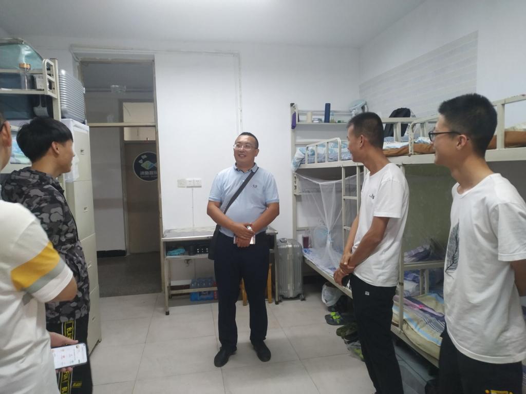 在第35个教师节来临之际,为了解公司新生入住宿舍的相关情况,帮助新生尽快适应新环境,9月7日下午5点,公司党委书记强汾生,经理赵变亲,党委副书记钱成,副经理栗永清、李伟,团委副书记樊琳琳,19级各班辅导员及部分教师代表一行人深入新生宿舍进行走访慰问。